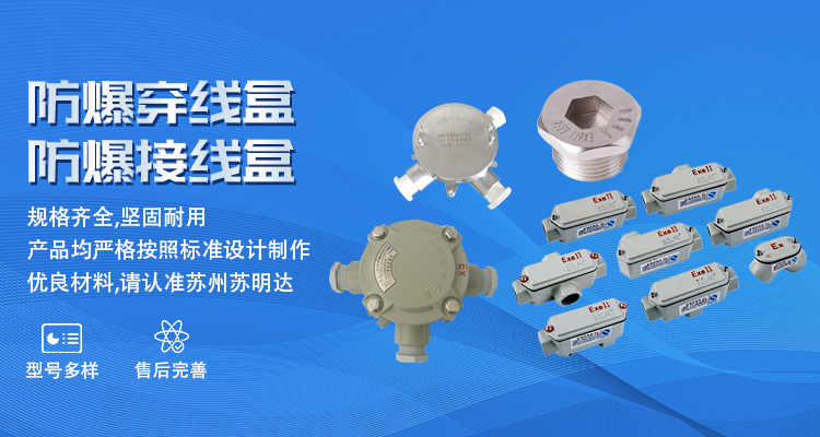 蘇州蘇明達防爆設備有限公司位于蘇州市相城區。是一家集研發、生產、銷售和服務于一體的科技型企業。公司專業生產防爆撓性連接管、防爆電纜夾緊密封接頭、防爆格蘭頭、防爆活接頭、防爆管接頭、防爆堵頭、鑄鋼防爆穿線盒、鑄鋼防爆隔離密封盒、鑄鋼防爆接線盒、防爆接線箱、防爆配電箱及防爆附件(電纜保護套筒、電機接頭、護口、格蘭頭護套、接地片、鎖緊螺母、U型管夾、安裝管夾、壓緊螺母、穿板接頭、吸盤、燈桿類等)。